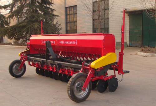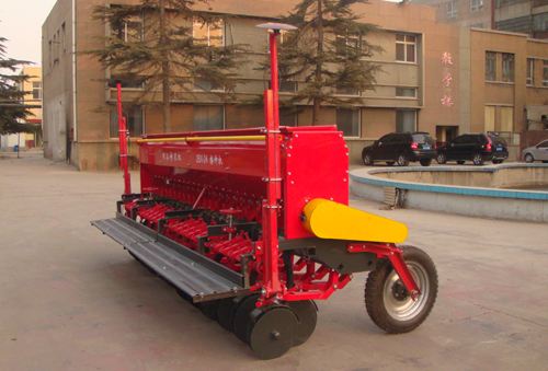 2BX-24播种机适用于麦类、谷子、高粱等作物的条播,并可兼播大豆。播种量、播种深度、行距均可根据农业技术要求进行调整。 本机采用三点悬挂装置与拖拉机挂接,运输方便。 本机采用外槽轮排种器,排种轮、、阻塞轮为粉末冶金件,具有耐热、耐寒的优点。采用波纹橡胶输种管,下种流畅;采用钢制双轴承开沟器,工作可靠。采用手轮调节播种深度,使用方便。 传动部分由橡胶轮、链轮和链条组成,可靠耐用,可适于高速作业。
