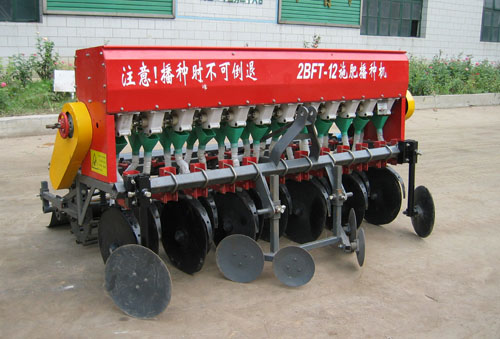2BFT-12播种机适用于平原、丘陵的中小地块条播小麦、大豆、并可兼播高粱、等作物。播种的同时可施下化肥。该系列播种机可与11-13.2KW轮式拖拉机配套,用三点悬挂装置与拖拉机挂结,具有机动灵活的优点。本系列机具采用轻型双圆盘开沟器,通过性好。本机装设有种子倒空装置、覆土装置及起垄装置。一次作业可完成覆轮辙、起垄、开沟、施肥、播种、覆土、镇压工序。