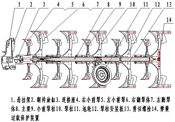 3.安装有弹簧和剪切螺栓组成的过载保护装置,有效保护工作部件在较恶劣的工作条件下不被损坏,通过性好适应性广。