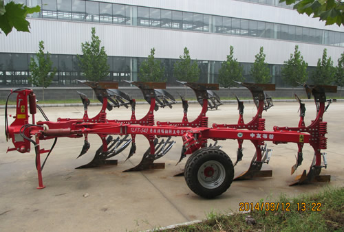 本产品可与180-220马力轮式拖拉机配套,其作用是将失去结构的表层土壤,连同地表杂草、残茬、虫卵、草子和肥料等翻埋到沟底,将下层的良好土壤翻到上层并疏松土壤,达到消灭杂草和病虫害、改善土壤结构、提高土壤肥力的目的,为作物生长创造良好条件。使用时间在秋收后或春播前。